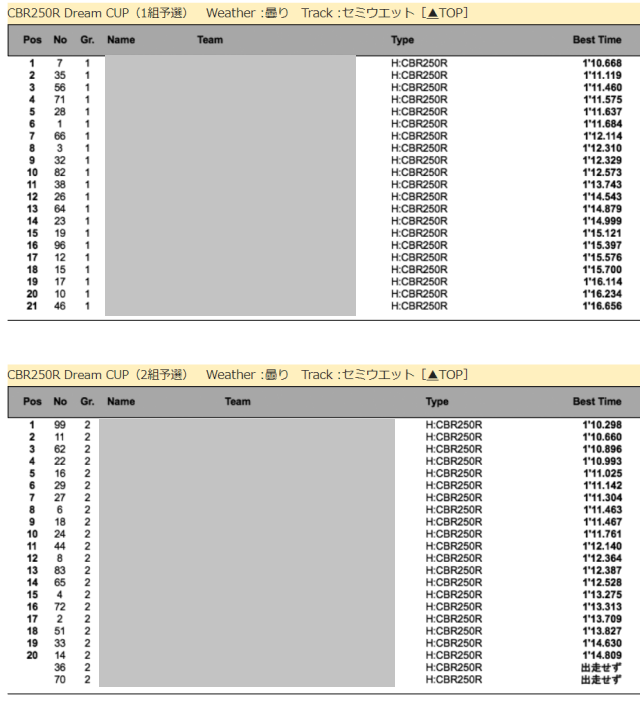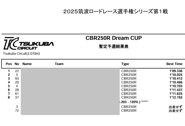 CBR250R Dream CUPに関しては、2015年は1枠に収まらなくて予選2枠もあったんですね~ それが2025年は10台だから四分の一。