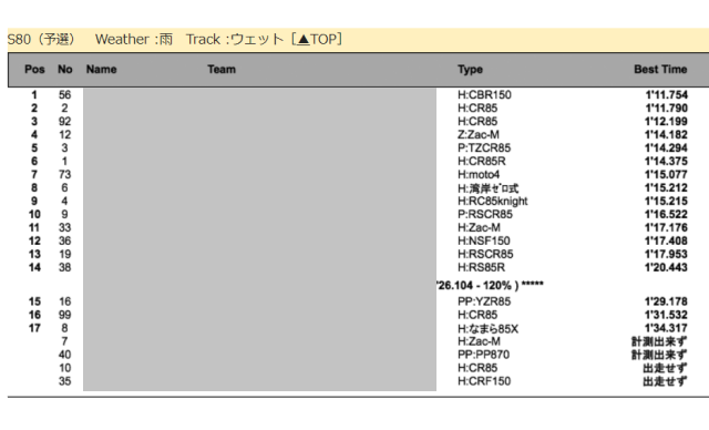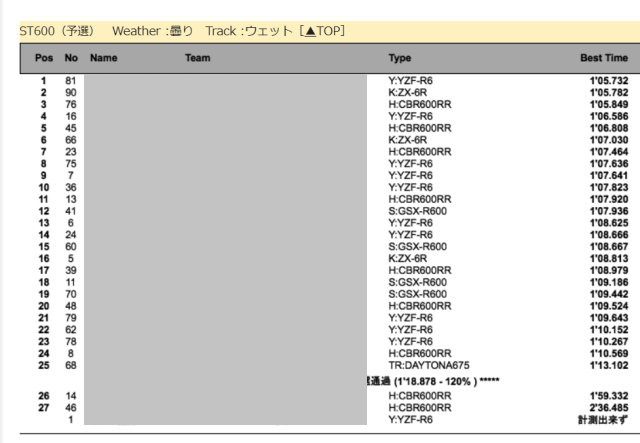 走る方のなかには、前日まで最終セッティングを行って、タイムを出すという方ももちろん多くて、MotoGPでいうFree Practiceとか、全日本のART合同走行みたいなやつですね。全日本選手だとこのART走行でかなりセッティング詰めて、タイムを出してくるとのこと。(私はむしろ転倒→修復不可で不戦敗とかが怖かったので、攻めることはできなかったですがw)